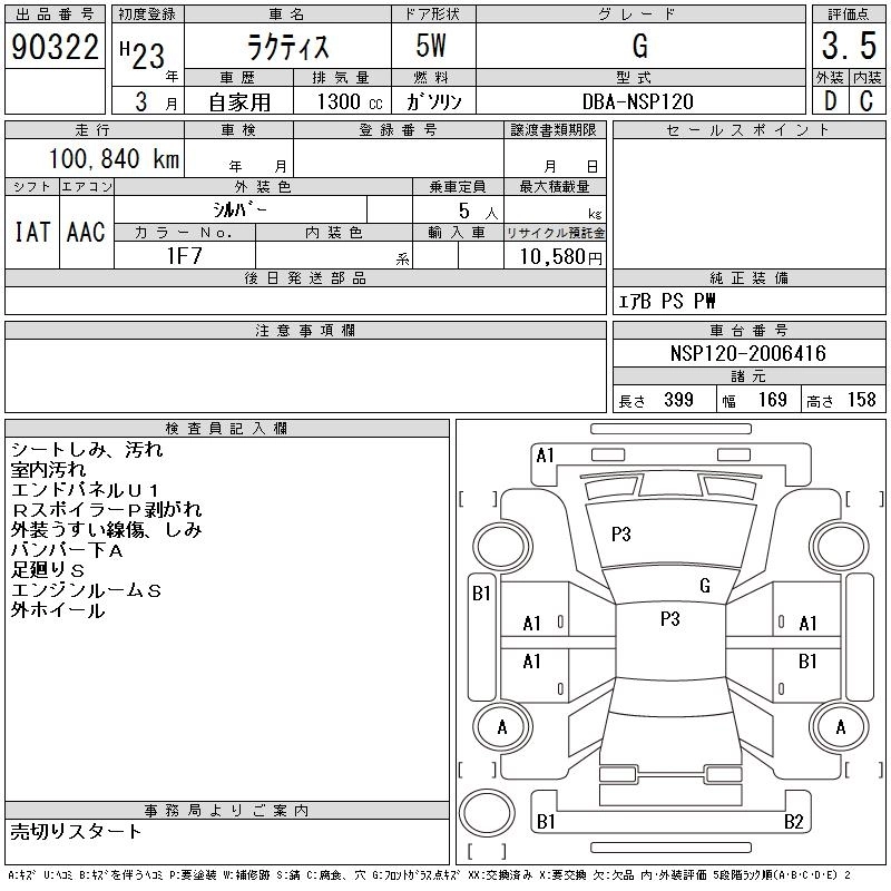 Год выпуска2011 Пробег 101 000 км КузовNSP120 КомплектацияG
