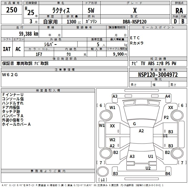 Год выпуска2013 Пробег 59 000 км КузовNSP120 КомплектацияX
