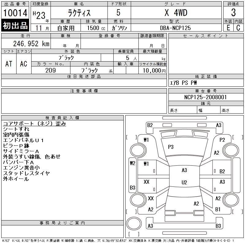 Год выпуска2011 Пробег 247 000 км КузовNCP125 КомплектацияX 4WD