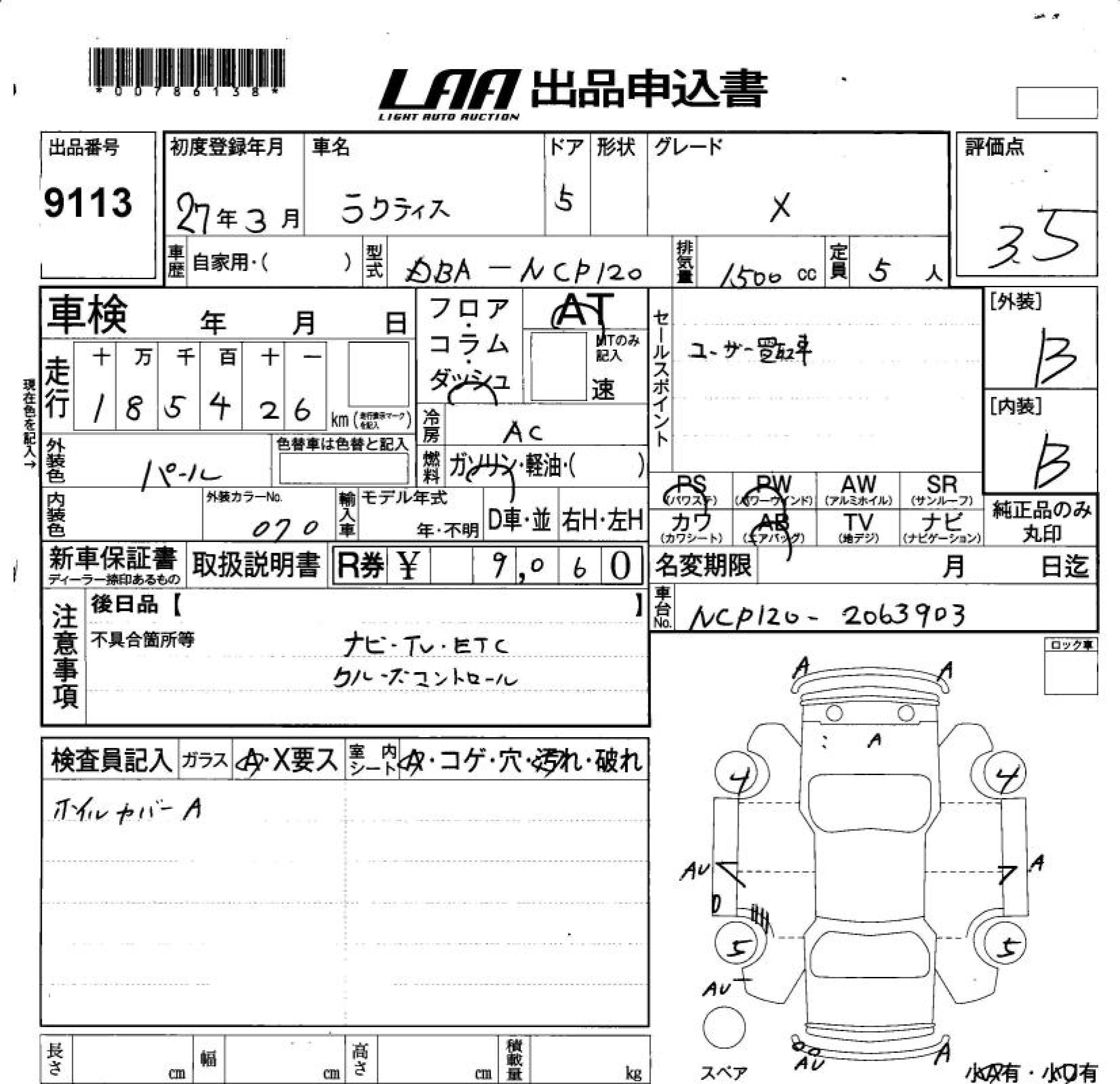 Статус выставлен на аукцион Лот 9113 Аукцион LAA Okayama Дата аукциона 13.03.2026