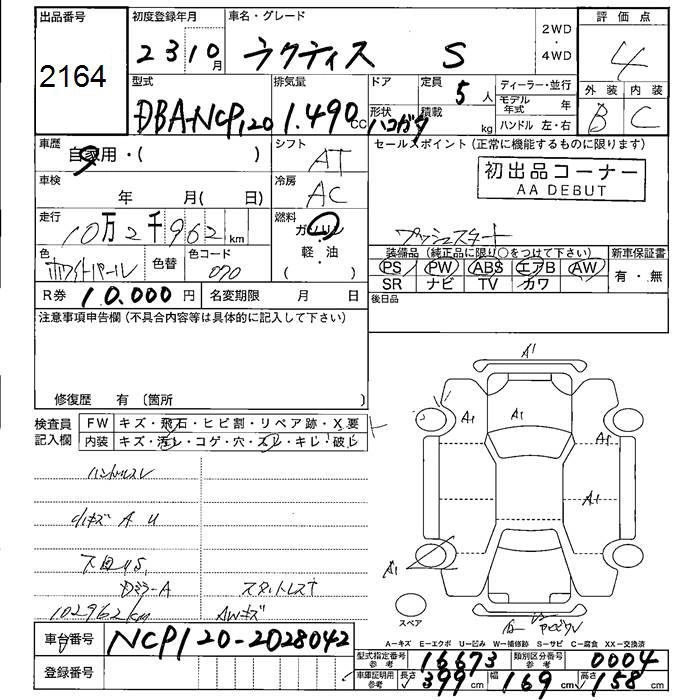 TOYOTA RACTIS 2011 г., лот № 2164