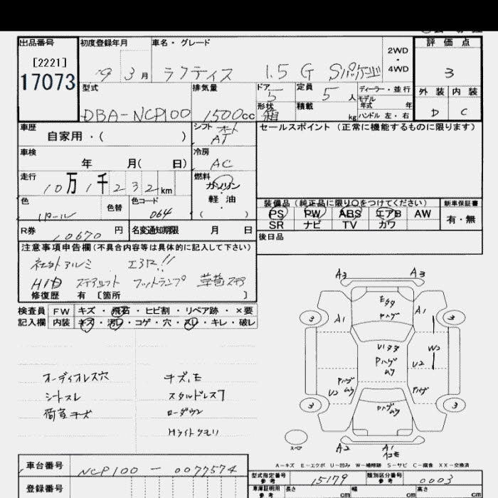 Стартовая цена авто на аукционе 69 000 ¥