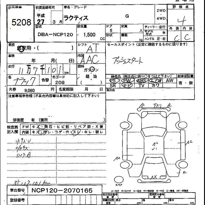 TOYOTA RACTIS 2015 г., лот № 5208
