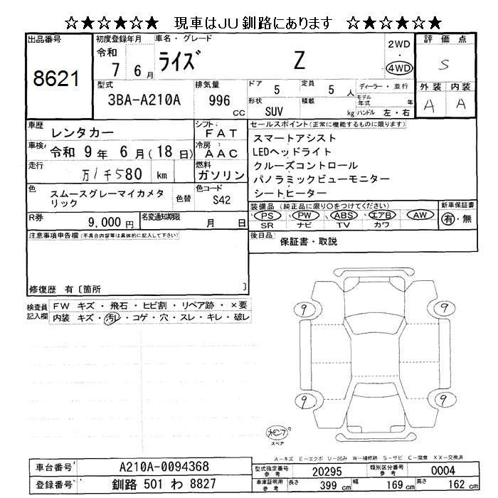 Статус выставлен на аукцион Лот 8621 Аукцион JU Hokkaido Дата аукциона 24.10.2025