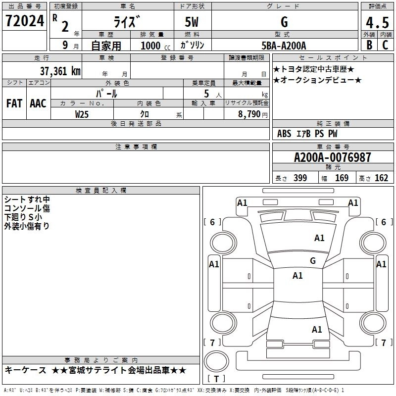 TOYOTA RAIZE 2020 г., лот № 72024