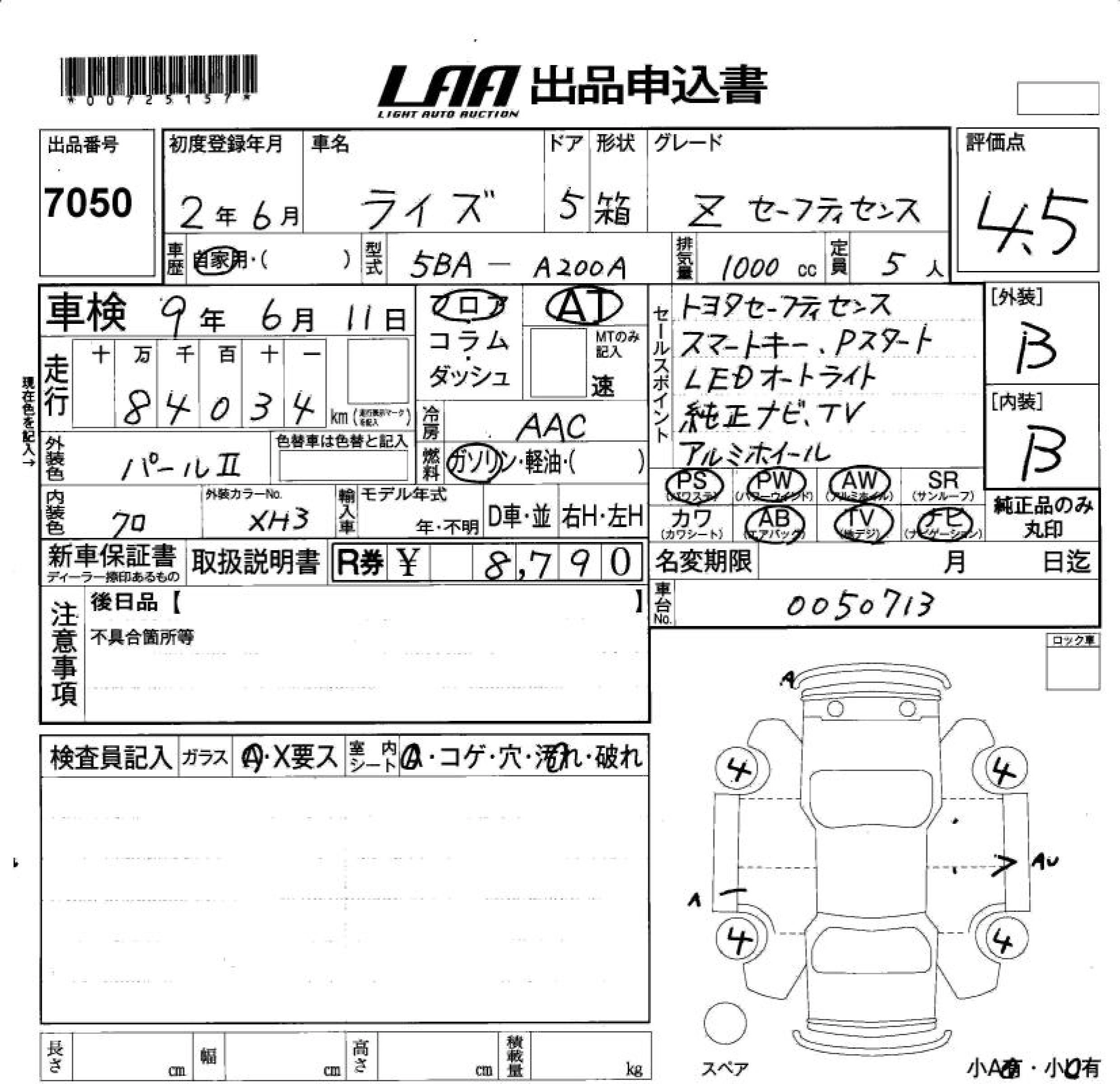 Статус не продан Лот 7050 Аукцион LAA Okayama Дата аукциона 23.01.2026
