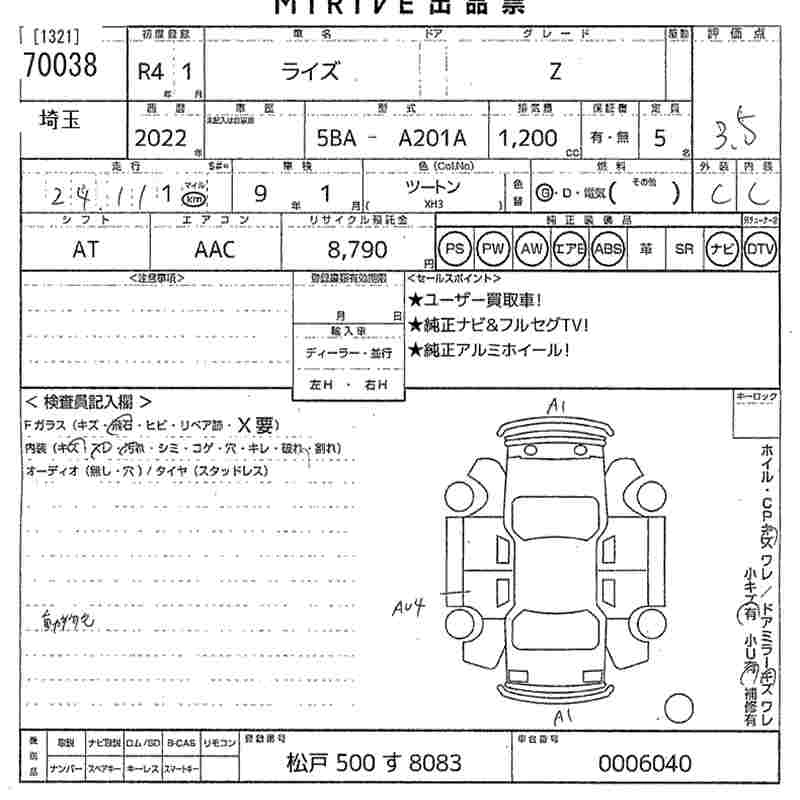 Статус выставлен на аукцион Лот 70038 Аукцион MIRIVE Saitama Дата аукциона 11.03.2026