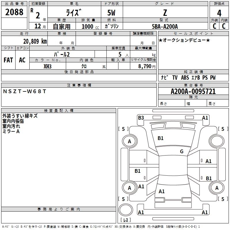 TOYOTA RAIZE 2020 г., лот № 2088