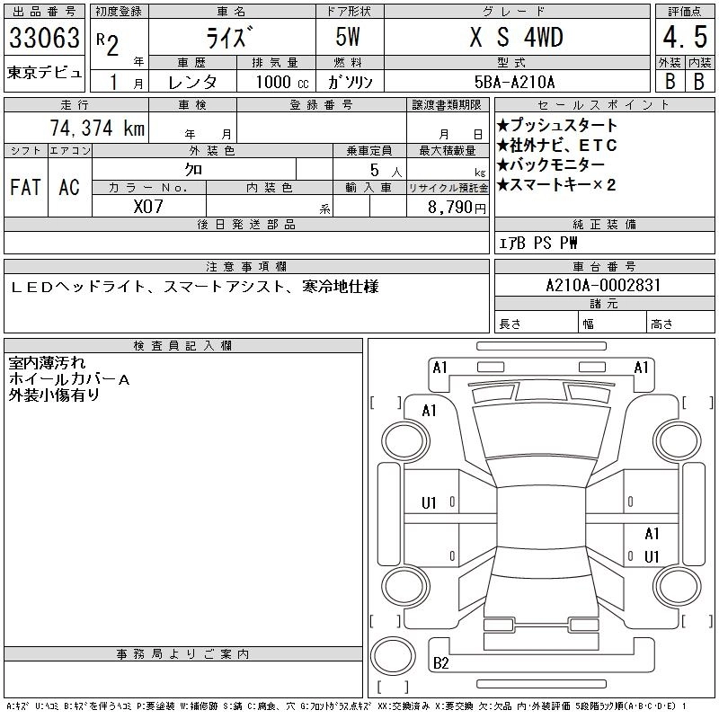 Год выпуска2020 Пробег 74 000 км КузовA210A КомплектацияX S 4WD