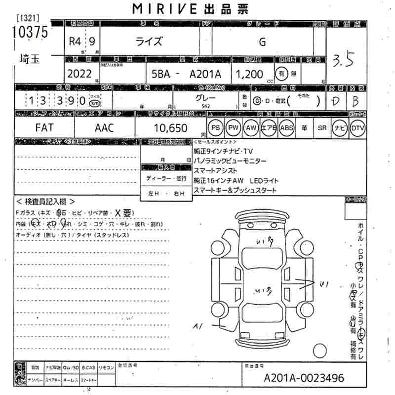 Статус выставлен на аукцион Лот 10375 Аукцион MIRIVE Saitama Дата аукциона 11.03.2026