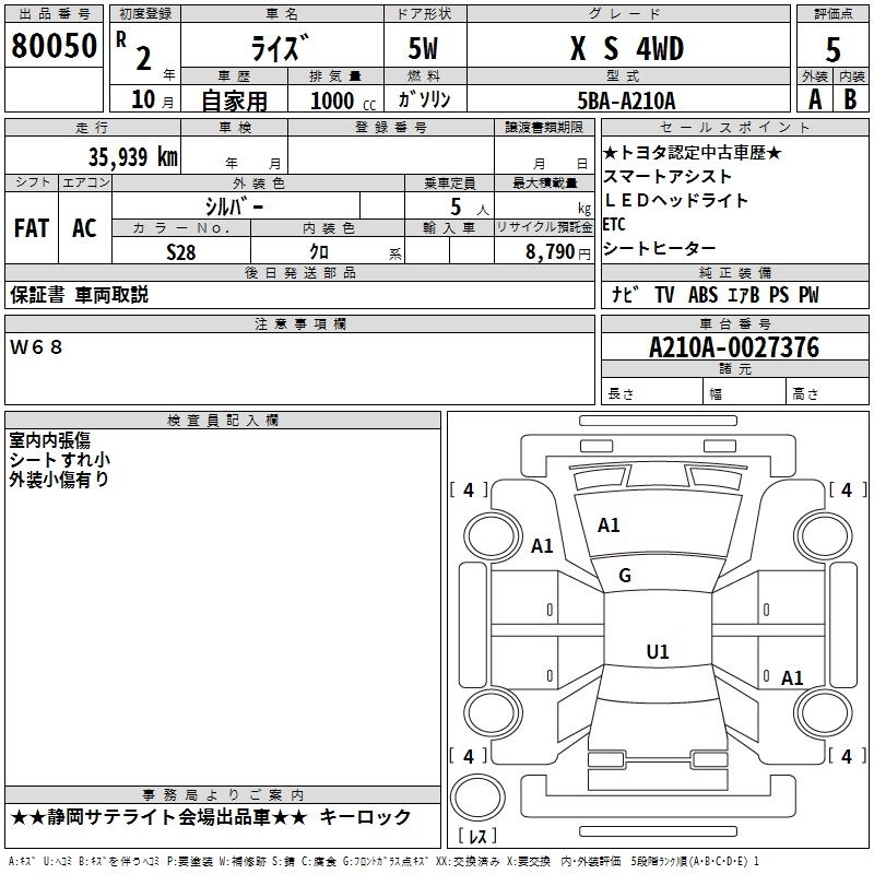 Статус выставлен на аукцион Лот 80050 Аукцион TAA Chubu Дата аукциона 12.03.2026