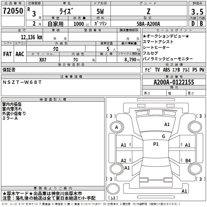 Статус выставлен на аукцион Лот 72050 Аукцион TAA Yokohama Дата аукциона 14.03.2026