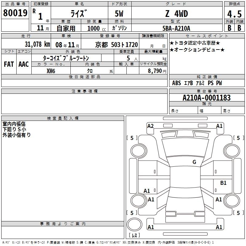 Год выпуска2019 Пробег 31 000 км КузовA210A КомплектацияZ 4WD