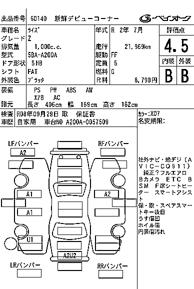 TOYOTA RAIZE 2020 г., лот № 60140