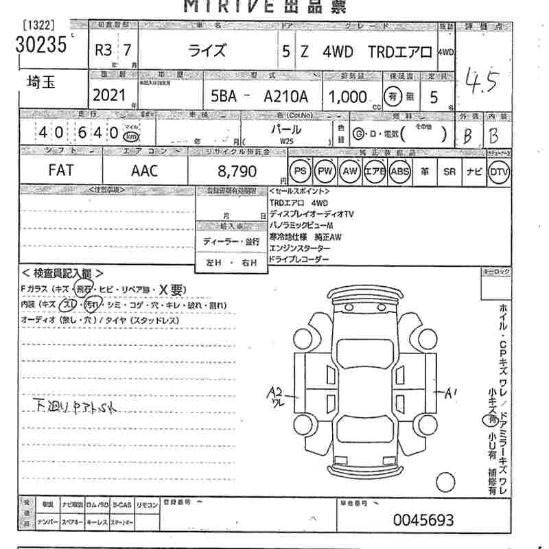 Статус выставлен на аукцион Лот 30235 Аукцион MIRIVE Saitama Дата аукциона 18.03.2026