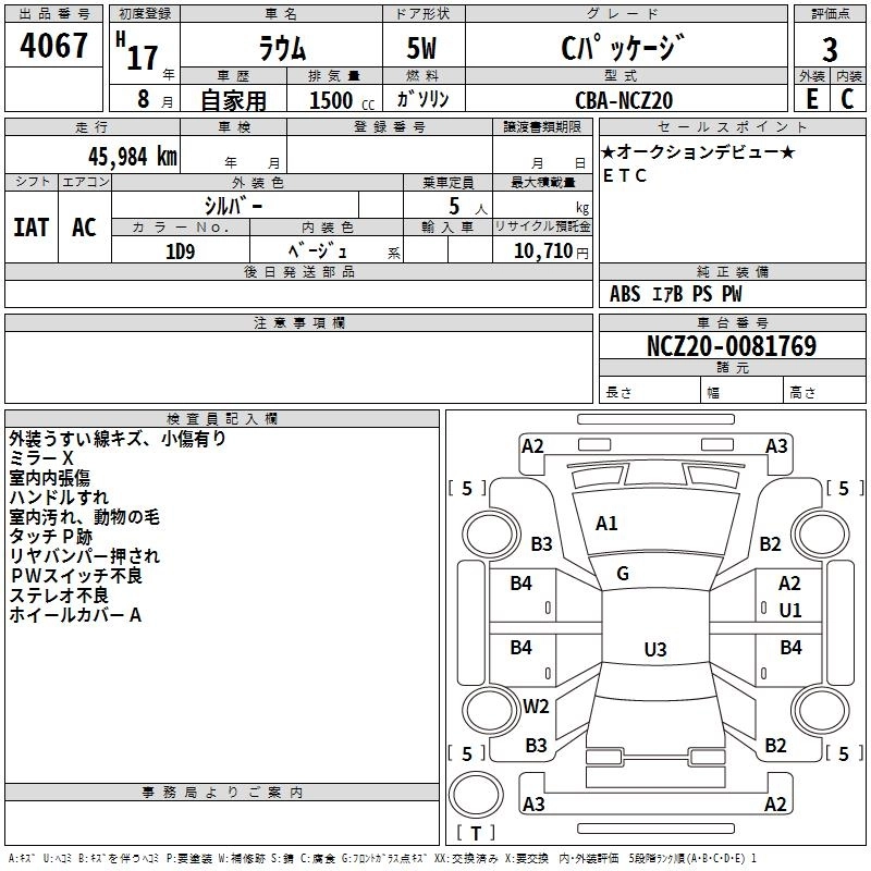 TOYOTA RAUM 2005 г., лот № 4067