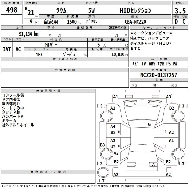 TOYOTA RAUM 2009 г., лот № 498