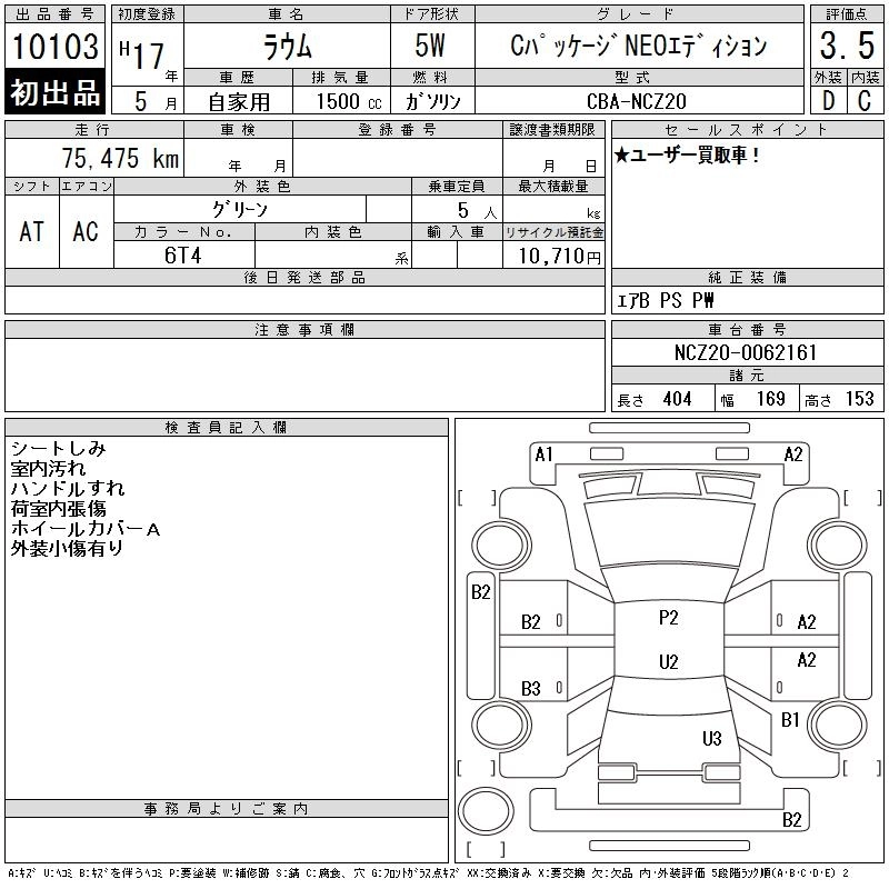 TOYOTA RAUM 2005 г., лот № 10103