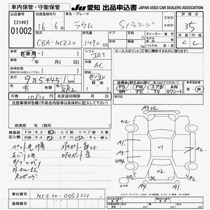 Статус выставлен на аукцион Лот 1002 Аукцион JU Aichi Дата аукциона 12.03.2026