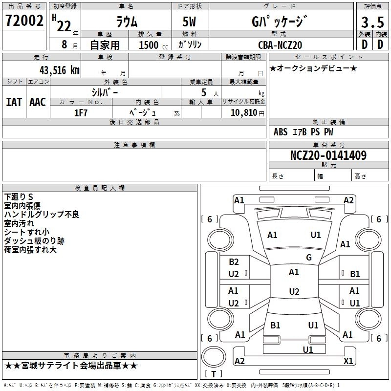 TOYOTA RAUM 2010 г., лот № 72002