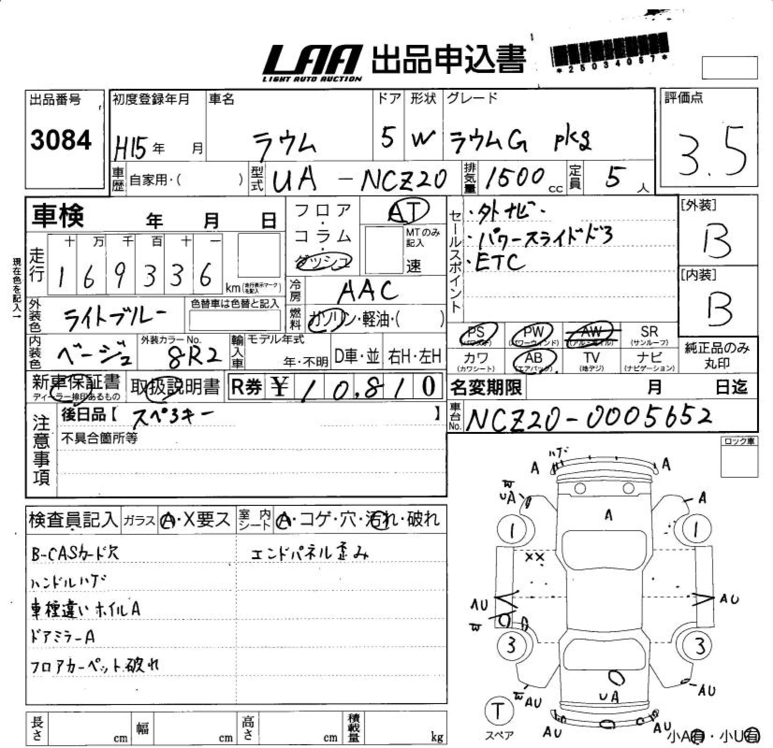 Статус продан Лот 3084 Аукцион LAA Shikoku Дата аукциона 11.03.2026