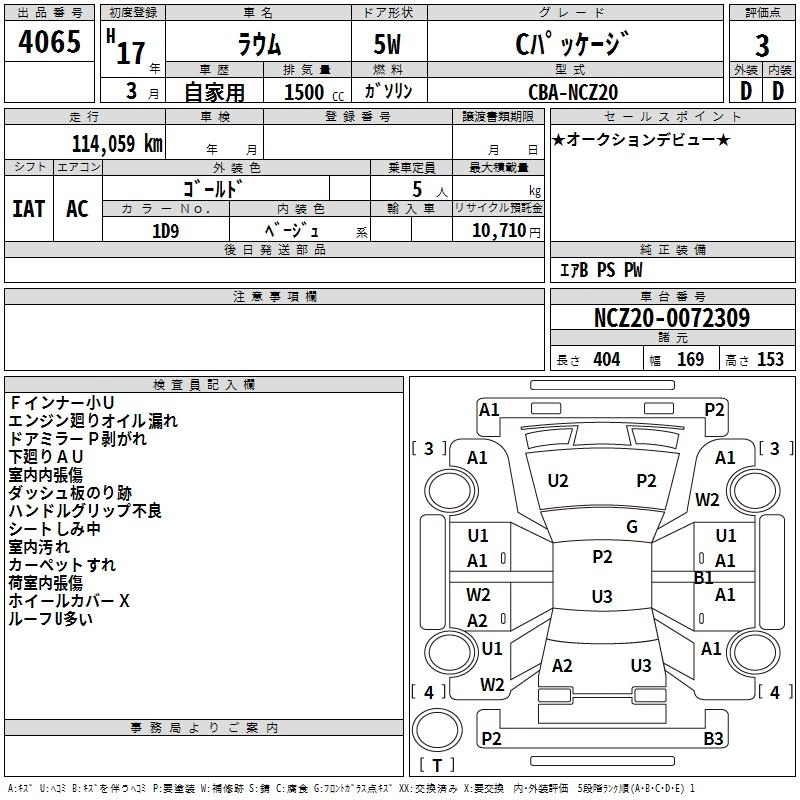 TOYOTA RAUM 2005 г., лот № 4065