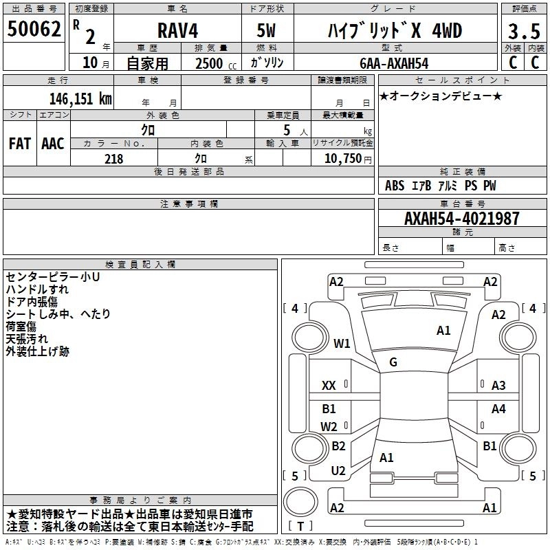 Статус выставлен на аукцион Лот 50062 Аукцион TAA Chubu Дата аукциона 11.12.2025