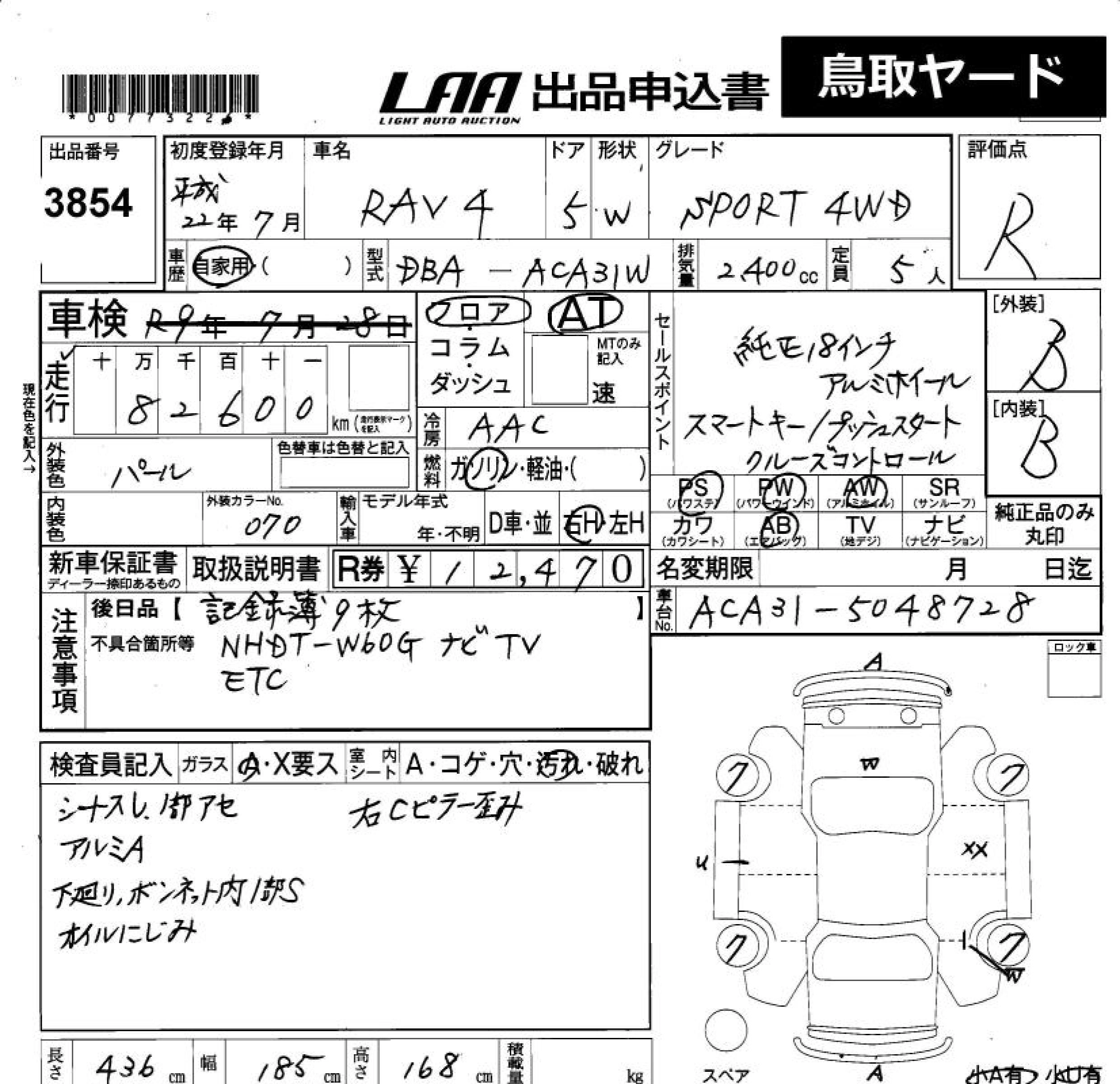 Статус продан Лот 3854 Аукцион LAA Okayama Дата аукциона 23.01.2026
