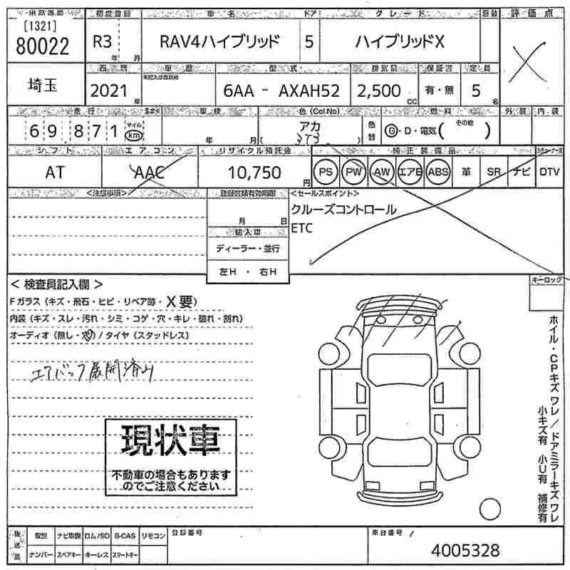 Статус выставлен на аукцион Лот 80022 Аукцион MIRIVE Saitama Дата аукциона 11.03.2026