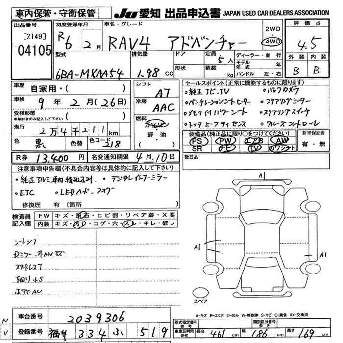Статус выставлен на аукцион Лот 4105 Аукцион JU Aichi Дата аукциона 12.03.2026