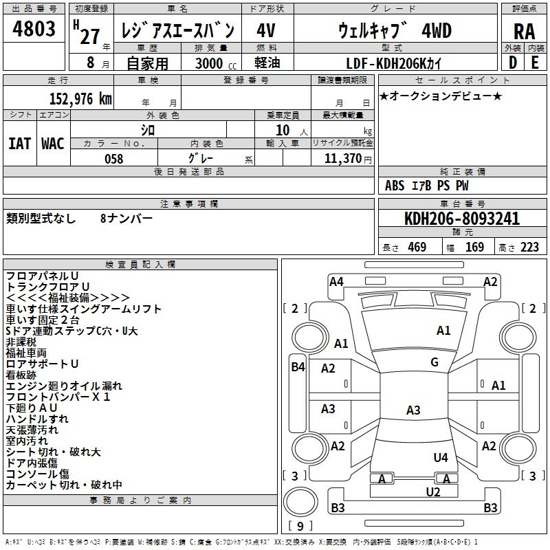 TOYOTA REGIUS VAN 2015 г., лот № 4803