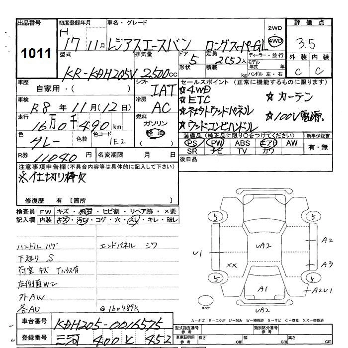 TOYOTA REGIUS VAN 2005 г., лот № 1011