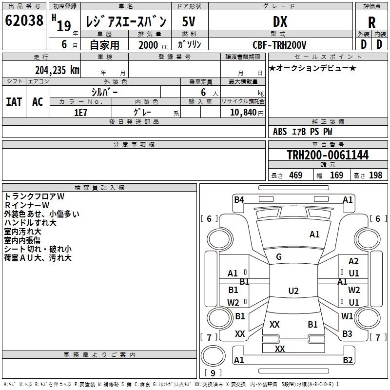 TOYOTA REGIUS VAN 2007 г., лот № 62038
