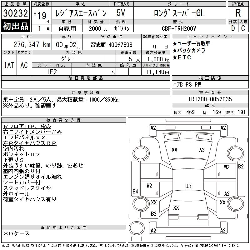 TOYOTA REGIUS VAN 2007 г., лот № 30232