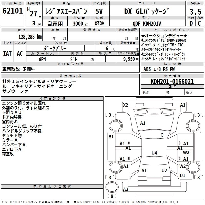 TOYOTA REGIUS VAN 2015 г., лот № 62101