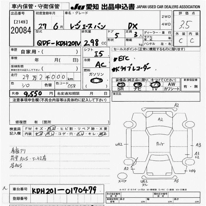 TOYOTA REGIUS VAN 2015 г., лот № 20084