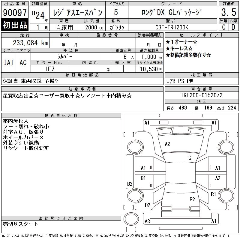 TOYOTA REGIUS VAN 2012 г., лот № 90097