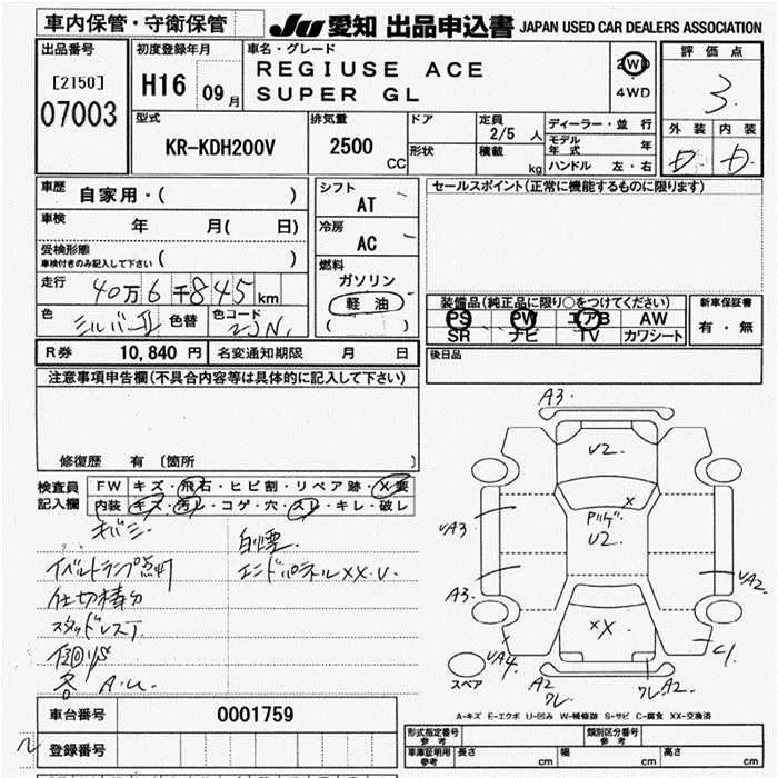 Статус выставлен на аукцион Лот 7003 Аукцион JU Aichi Дата аукциона 19.03.2026
