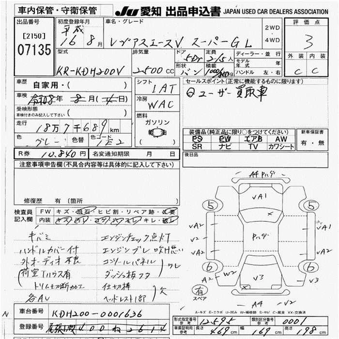 Год выпуска2004 Пробег 188 000 км КузовKDH200V Комплектация SUPER GL