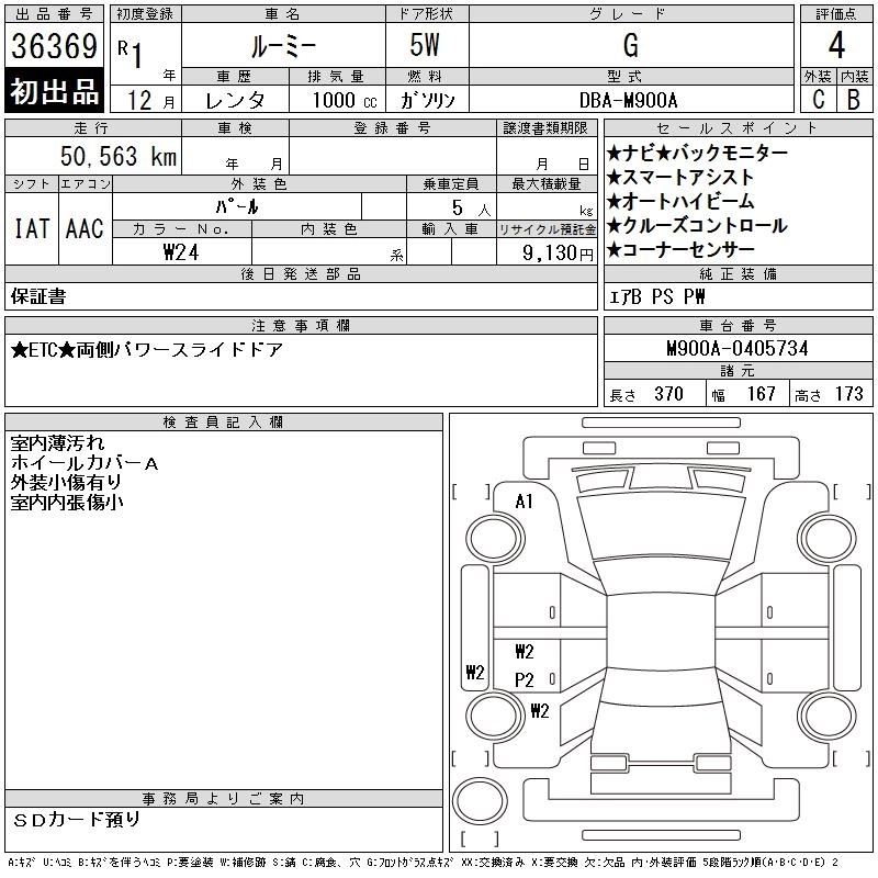 TOYOTA ROOMY 2019 г., лот № 36369