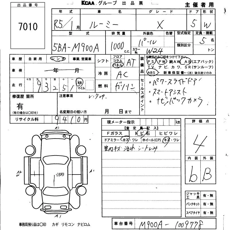 TOYOTA ROOMY 2023 г., лот № 7010