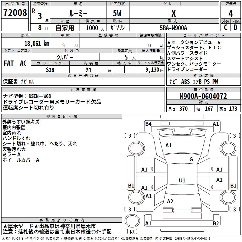 TOYOTA ROOMY 2021 г., лот № 72008