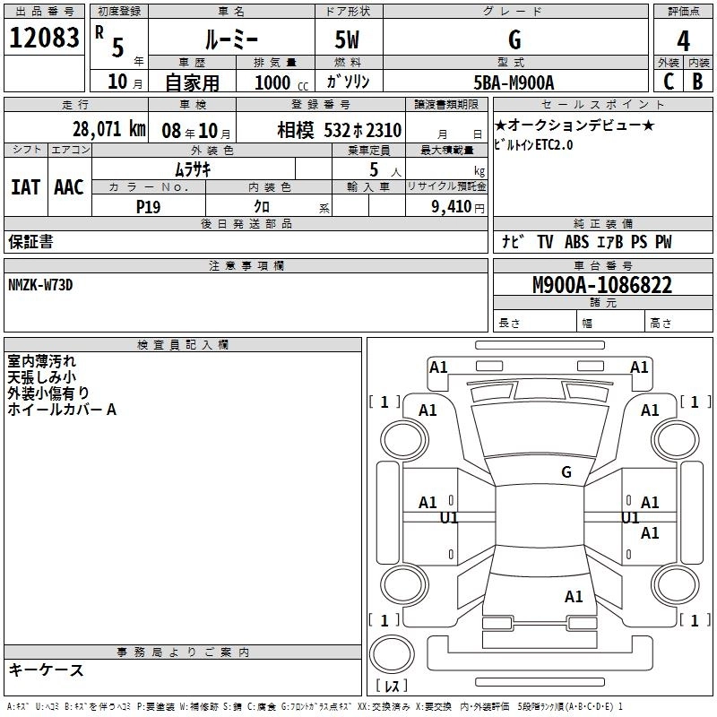 TOYOTA ROOMY 2023 г., лот № 12083
