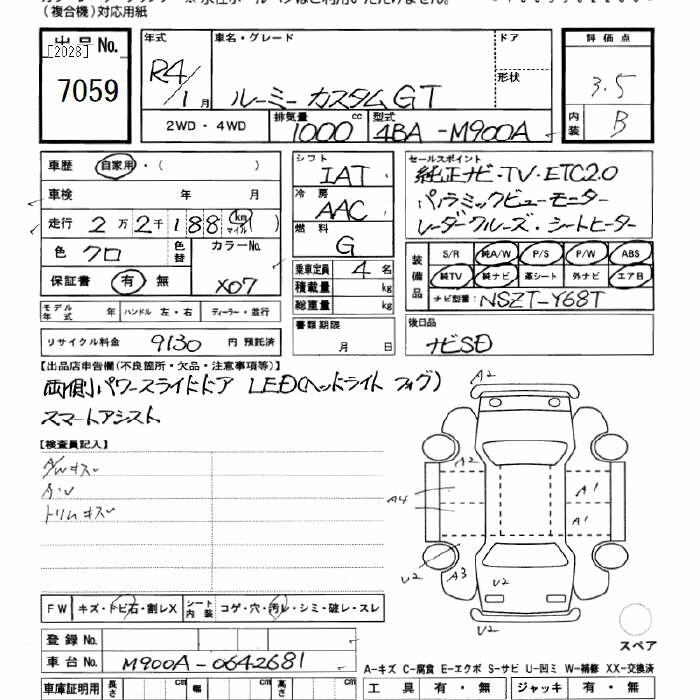 TOYOTA ROOMY 2022 г., лот № 7059