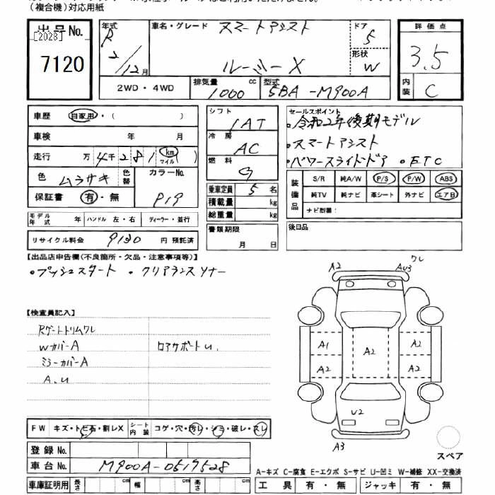 Год выпуска2020 Пробег 4 000 км КузовM900A КомплектацияX SMART ASSIST