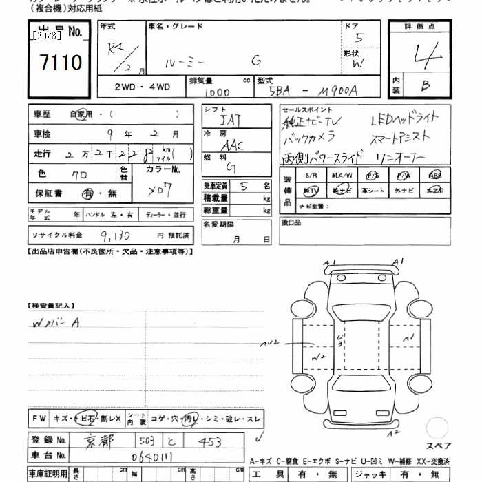 TOYOTA ROOMY 2022 г., лот № 7110