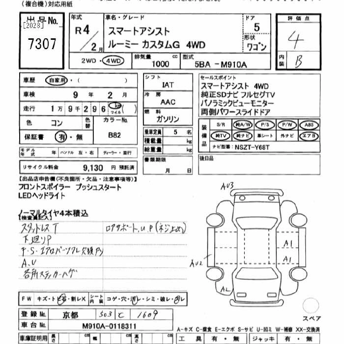 TOYOTA ROOMY 2022 г., лот № 7307