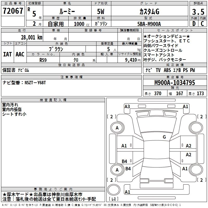 TOYOTA ROOMY 2023 г., лот № 72067