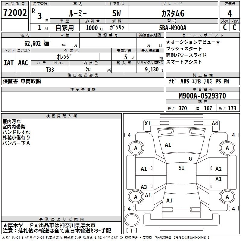 TOYOTA ROOMY 2021 г., лот № 72002