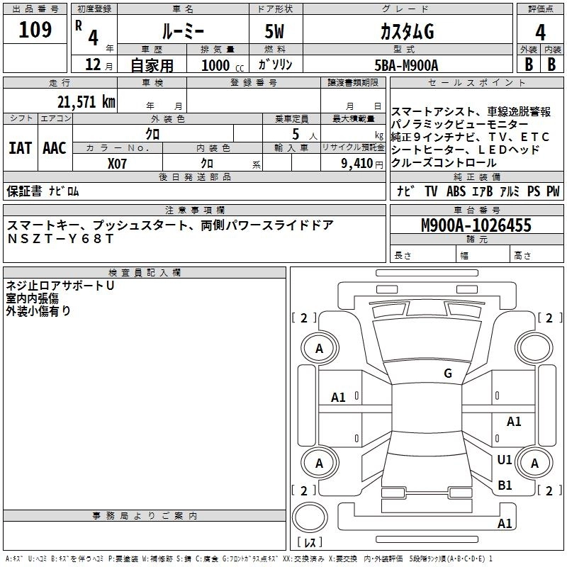 TOYOTA ROOMY 2022 г., лот № 109
